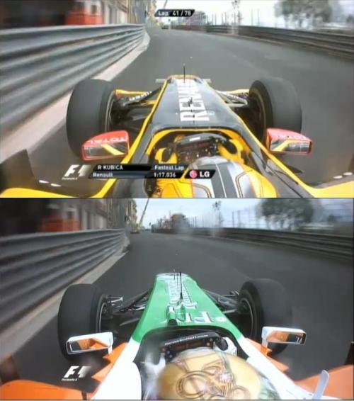 A normal lap from Kubica (above) and Liuzzi behind Barrichello