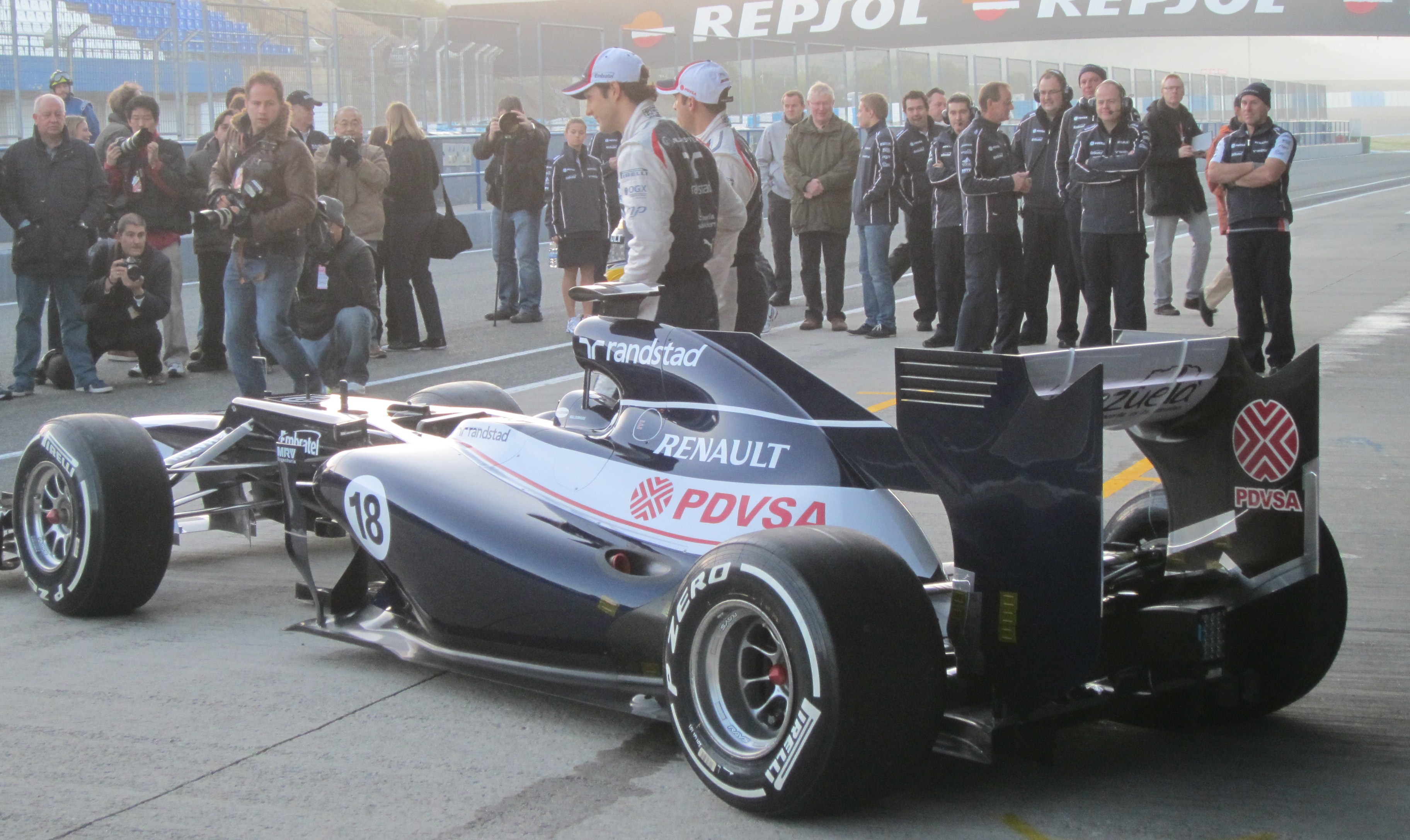 The Williams FW34 was shown in Jerez this morning, before Pastor Maldonado gave the car its first laps shortly afterwards.
