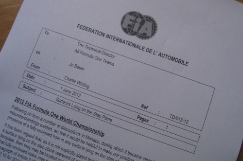 As expected the FIA has clamped down on the controversial Red Bull floor by clarifying its position and stating that the holes in front of the RB8’s rear wheels are not permitted.